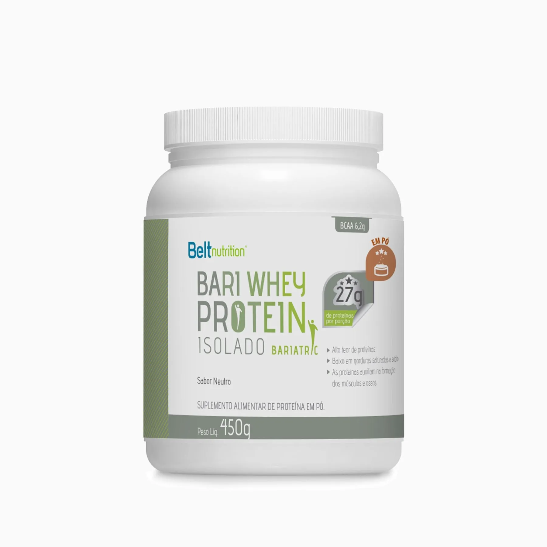 Whey Protein Isolado - Belt Bari - BELT NUTRITION Perfeito para a fase de recuperação pós-operatória, o Belt Bari Whey Protein Isolado se destaca pela ausência de aditivos – sem glúten, corantes, adoçantes e aromas artificiais – assegurando um aporte proteico natural e de qualidade. Além disso, seu baixíssimo teor de lactose, abaixo de 0,1g, torna-o ideal para digestão e assimilação sem esforço. Priorize sua saúde com Belt Bari Whey Protein Isolado, o aliado definitivo na preservação de massa muscular, minimizando a queda capilar e reforçando a resistência das unhas, graças ao seu alto valor proteico. Não apenas para o pós-operatório, Bari Whey é o complemento perfeito para seu pós-treino ou como um reforço protéico em sua dieta diária, enriquecido com uma alta concentração de BCAAs e glutamina para potencializar seu ganho de massa magra e elevar sua performance. Por que escolher Whey Isolado após a cirurgia bariátrica? O whey protein isolado é uma forma purificada de proteína do soro do leite que contém uma alta concentração de proteína, geralmente acima de 90%, com mínima quantidade de lactose e gordura. É rapidamente absorvido pelo organismo, tornando-o uma escolha popular entre atletas e indivíduos buscando uma rápida recuperação muscular e suporte nutricional sem os extras encontrados no whey concentrado. Melhor Whey para Bariatricos O whey protein isolado contém formulação mais pura de proteína, quase nenhuma gordura ou lactose, sendo ideal para quem tem intolerância à lactose ou requer rápida absorção de proteína. É preferido após a cirurgia bariátrica devido à alta digestibilidade e absorção, oferecendo suporte para as necessidades elevadas de proteína e cicatrização sem sobrecarregar o sistema digestivo alterado. Dieta Líquida Pós-Bariátrica O whey protein isolado geralmente pode ser consumido na dieta líquida após a cirurgia bariátrica, pois é de fácil digestão e absorção. No entanto, é importante que isso seja feito sob orientação de um nutricionista ou médico, que determinará o momento apropriado e a forma de introdução, respeitando as restrições alimentares pós-operatórias e as necessidades individuais do paciente.
