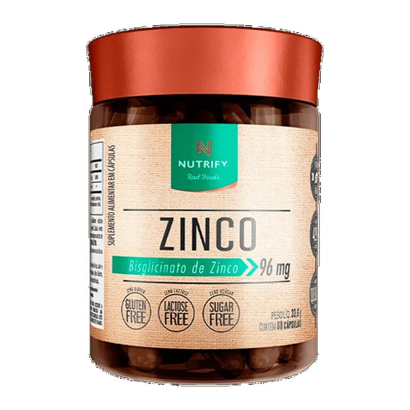 Zinco Nutrify – Pureza mineral com alta absorção Zinco Nutrify é uma forma conveniente, segura e confiável de consumir um mineral fundamental para o bom equilíbrio de nossa saúde geral, com destaque para sua ação antioxidante e no funcionamento do sistema imune. Zinco Nutrify traz o mineral em uma forma altamente absorvível: o bisglicinato de zinco que, a cada 96 mg, fornece 29,59 mg de zinco ao organismo. Alta concentração e absorção otimizada fazem deste um suplemento de qualidade excepcional para a ingestão desse nutriente.